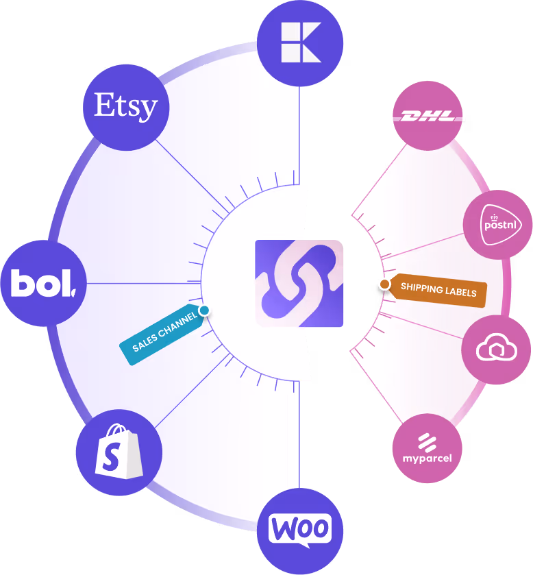 Connect your webshop, marketplaces, and carriers.
